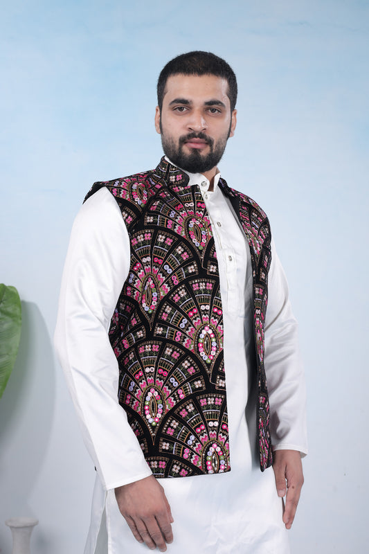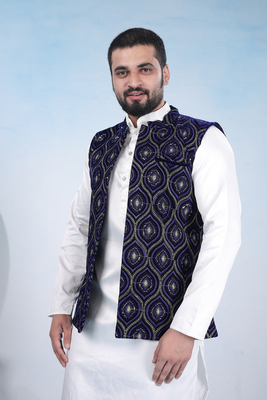 Elevate your ethnic wardrobe with the latest Navy Blue Embroidered Koti for Men in Surat...