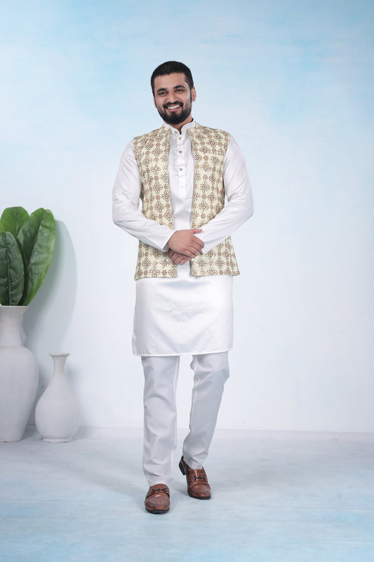 Step into elegance with the latest Light Yellow Embroidered Koti for Men in Surat from...