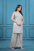 Blueish Gray Georgette Embroidered Co-Ord Set in Surat | Designer Women Outfit